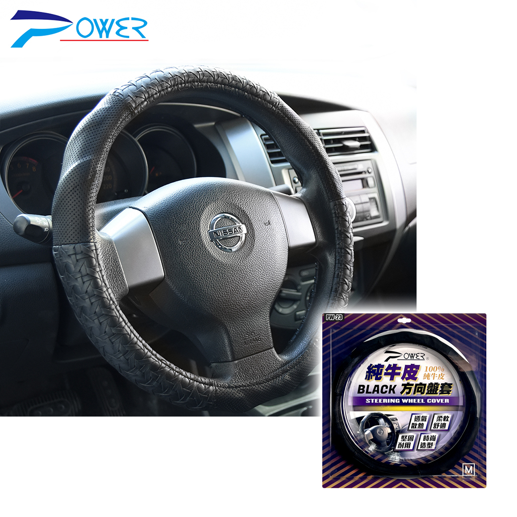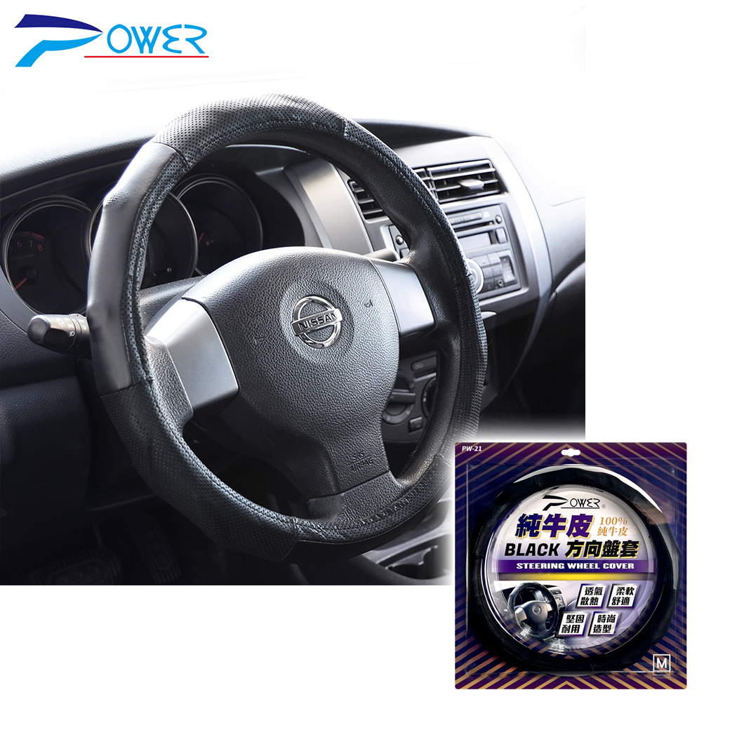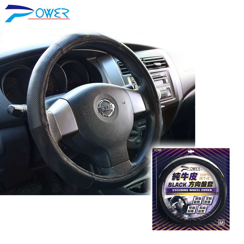 【POWER】PW-22 純牛皮方向盤套-黑(S.M.L)