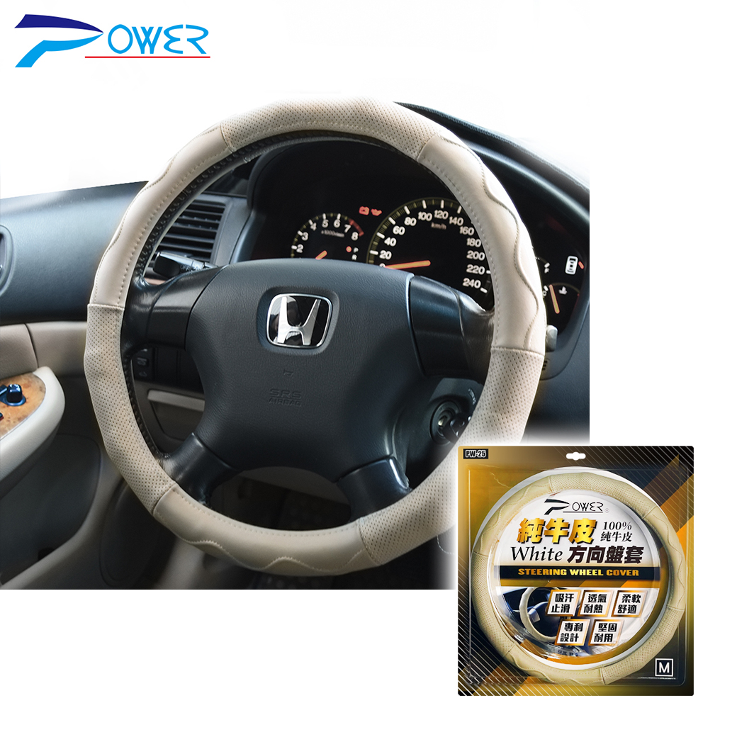 【POWER】PW-25 純牛皮方向盤套-米(S.M.L)