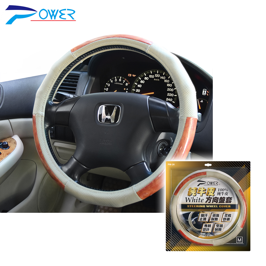 【POWER】PW-26 純牛皮方向盤套-核木(S.L)