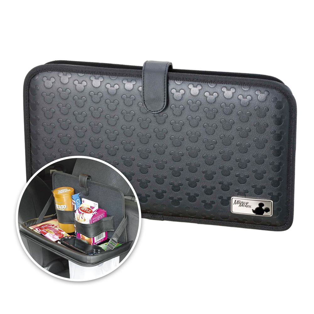 ●使用頭枕支架安裝,採用印有米奇圖案的壓花布料的後座托盤。