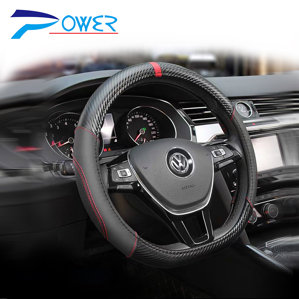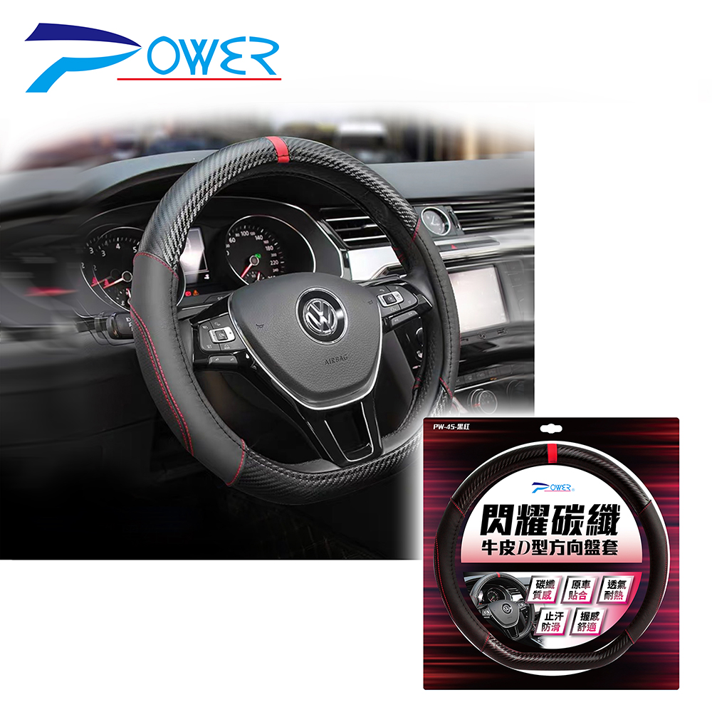 PW-45 閃耀碳纖牛皮D型方向盤套-黑紅