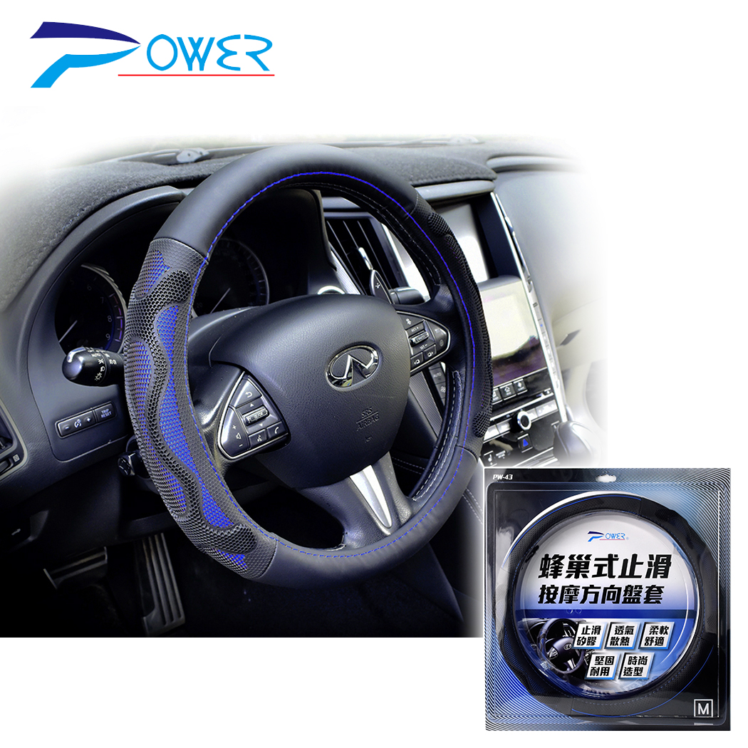 【POWER】PW-43 蜂巢式止滑按摩方向盤套-藍M