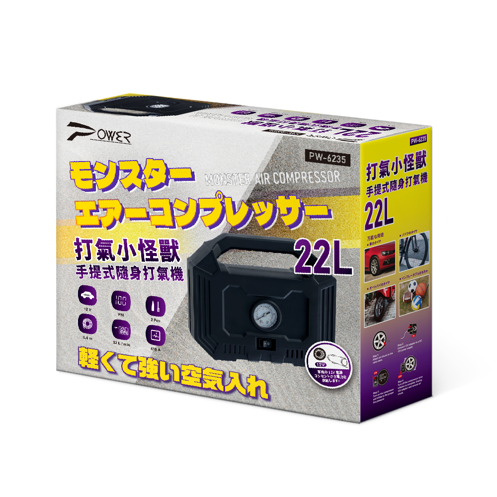 品名:PW-6235 打氣小怪獸 手提式隨身打氣機22L