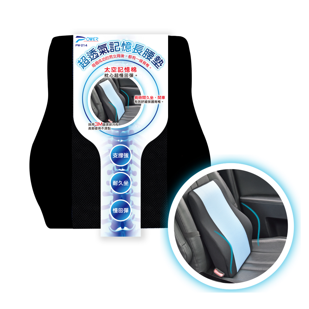 【POWER】PW-214-2 超透氣記憶長腰靠墊(黑)