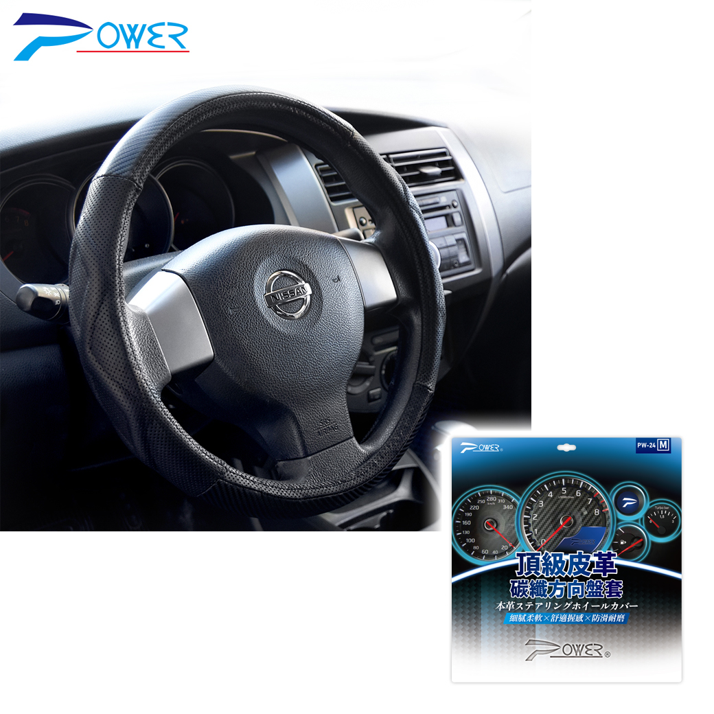 【POWER】PW-24 頂級皮革碳纖方向盤套(S.M.L)