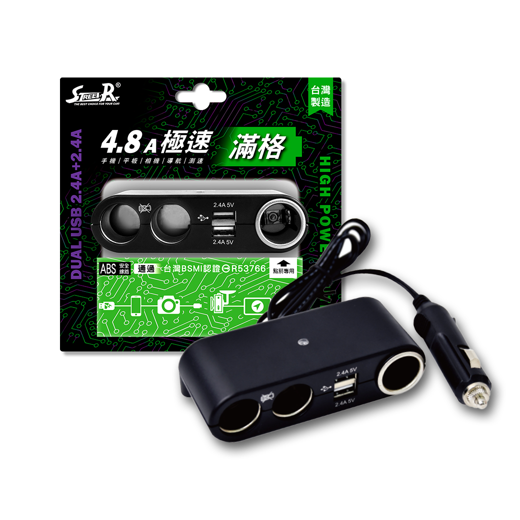 ▸雙USB 2.4 + 2.4A(4.8A輸出)高功率輸出。