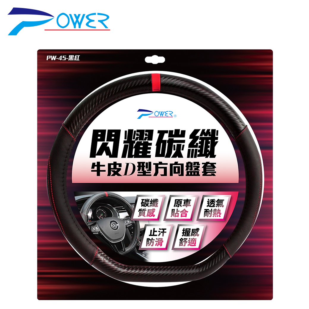 PW-45 閃耀碳纖牛皮D型方向盤套-黑紅