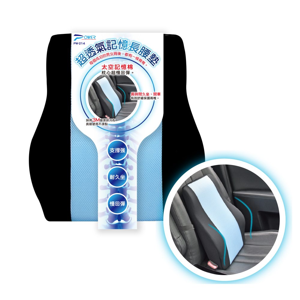 【POWER】PW-214 超透氣記憶長腰墊(蔚藍)
